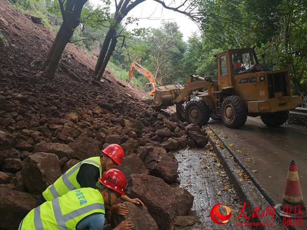 7月22日上午,雨后初晴的天氣涼風(fēng)習(xí)習(xí)。在國道318線萬州境內(nèi)長嶺與長灘兩個鎮(zhèn)鄉(xiāng)之間的一處塌方體前,吳興建正在操作著熟悉的裝載機,加緊搶通道路。正實行半幅通行的公路上,車流如織。項目副經(jīng)理孟紅偉正帶領(lǐng)搶險突擊隊,在另一側(cè)山體上加緊清理前幾天被山洪沖垮、引發(fā)塌方的堆積物,并組織機械人員疏通排水溝,砌筑片石混凝土擋墻。